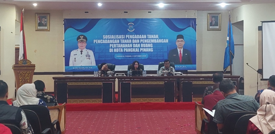 Sinergi Babel.Com – Penjabat (Pj) Wali Kota Pangkalpinang, M. Unu Ibnudin, menghadiri kegiatan Sosialisasi Pengadaan Tanah dan Pengembangan Pertanahan dan Ruang yang berlangsung di Balai Betason Kantor Wali Kota Pangkalpinang, Kamis (2/10/2025).
